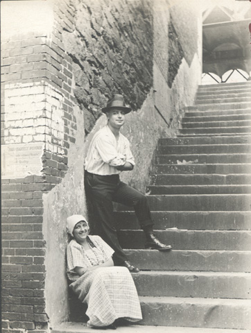 [Jewish man standing and Irish woman seated on a staircase, between Water and Front Streets, north of Market Street, Philadelphia] Photographer’s manuscript note on verso: “Not in Florence, Genoa, or Naples. An outside stairway between Water and Front Sts., No. of Market St. Phila. The characters are not Italians. The man is a Jew and the young woman is Irish.” P.8513.107 |