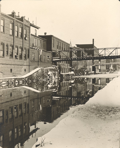 [Industrial buildings lining canal in Manayunk, Philadelphia during winter] Photographer’s manuscript note on verso: “Canal scene in winter - Manayunk, Phila. Along this canal are located the largest mills and factories of Manayunk, the output of which represents several hundred thousand dollars a year. Akin to a scene in Holland.” P.8513.214 |